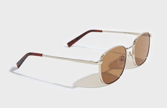 A pair of pilot sunglasses with a metal frame and contrasting rounded temples in acetate. The polished metal hardware is engraved with the Burberry logo and hallmarks. Scratch-resistant silver lenses with mirror effect.